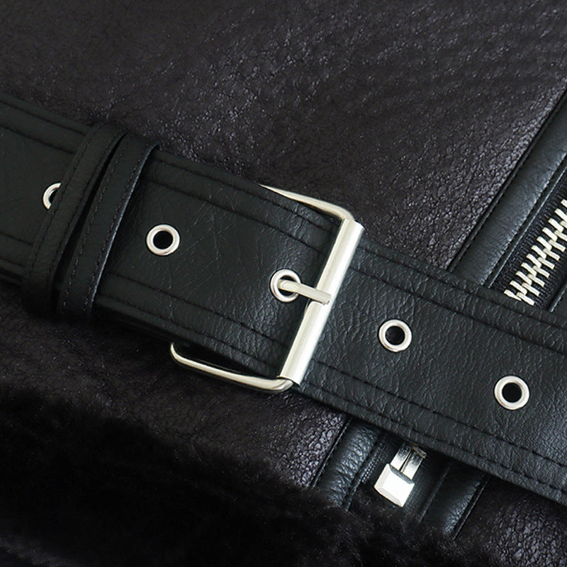 • Elegant Fusion: Combines sleek leather with plush fur for a sophisticated statement piece.